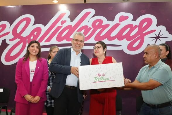 Morelia, Michoacán, 8 de diciembre de 2025.- El gobernador Alfredo Ramírez Bedolla y la secretaria de Igualdad Sustantiva y Desarrollo de las Mujeres, Alejandra Anguiano González, entregaron a 320 michoacanas kits de belleza para impulsar el autoempleo y contribuir a su autonomía económica, como parte del programa “Las Solidarias”.