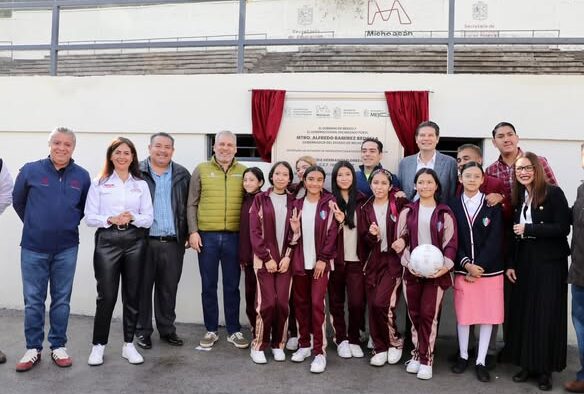 Morelia, Michoacán, 10 de diciembre de 2025.- Para impactar de manera positiva en el desarrollo físico, social, emocional y académico de las y los estudiantes, el gobernador Alfredo Ramírez Bedolla dio la patada inaugural de dos canchas de fútbol 7 en la Escuela Secundaria Federal No. 2 “Hermanos Flores Magón”.