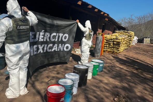 En un operativo efectuado en los municipios de Turicato y Nocupétaro, el Ejército Mexicano aseguró 335 kg de una sustancia granulada y blanca con las características propias de la metanfetamina, seis reactores, siete condensadores y cuatro tanques de gas LP. Además de 180 costales de sosa cáustica, 140 costales de ácido y 23 tinas.