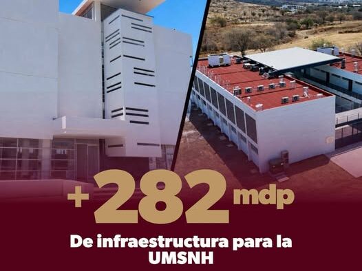 Durante la administración del gobernador Alfredo Ramírez Bedolla se han destinado 282.1 millones de pesos para la ejecución de 31 obras y acciones en la Universidad Michoacana de San Nicolás de Hidalgo (UMSNH), con lo cual se ha mejorado la infraestructura educativa para las y los jóvenes de la entidad.