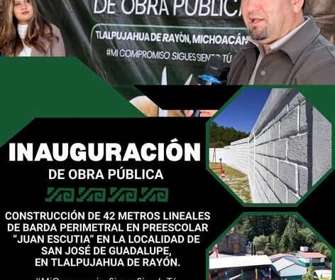 INAUGURACIÓN de obra pública por parte del Presidente Municipal Jorge Medina Montoya. Con la construcción de una Barda Perimetral en el Preescolar «Juan Pablo Escutia» de la localidad San José de Guadalupe .