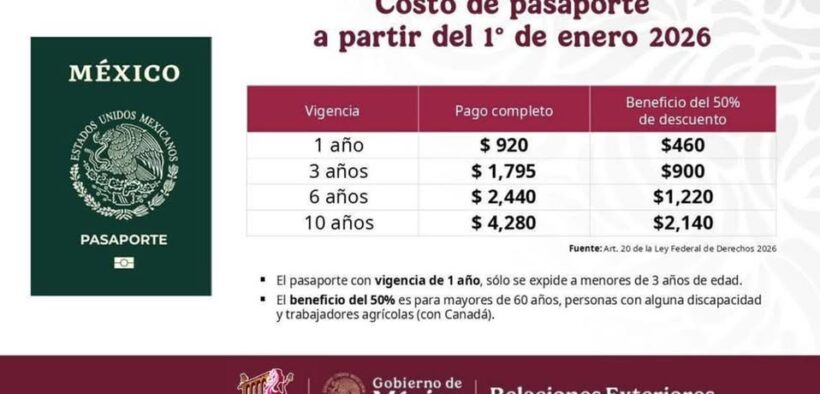 La Secretaría de Relaciones Exteriores (SRE) ha actualizado los costos del pasaporte mexicano para 2026e en Jungapeo, Mich.