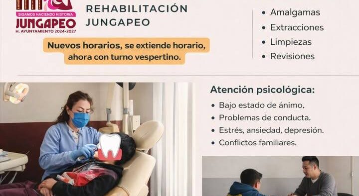El H. Ayuntamiento de Jungapeo que preside la L.A.E. Norma Angélica Yañez Sierra informa a la ciudadanía que la Unidad Básica de Rehabilitación amplía su horario de atención para brindar un mejor servicio. Ahora contamos con turno vespertino.